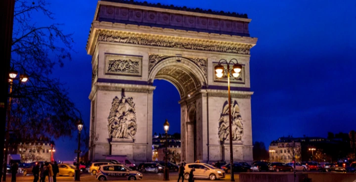The Arc de Triomphe (Arc de Triompf) is one of the most famous buildings in Paris. The arch at the end of the Champs-Elysee, is incredibly busy traffic square that allows major roads to intersect in the center of the city.